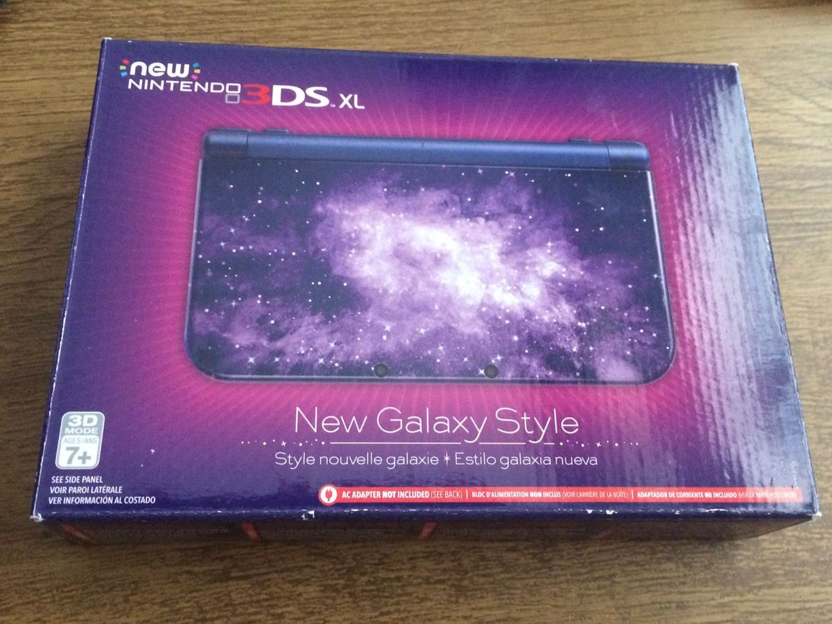 New never used BRAND NEW UNOPENED BOX Box has small tear as pictured The Galaxy-Style Nintendo 3DS XL Gaming System is the next dimension in entertainment. With Face Tracking The face-tracking feature uses the systems inner cameras to adjust images based on your viewing angle so you can enjoy total immersion in your games. A New Galaxy Style New Nintendo 3DS XL is coming to stores starting this week for 19999. THE NEXT DIMENSION IN ENTERTAINMENT The New Nintendo 3DS XL system combines next-generation portable gaming with super-stable 3D technology and added control features. Got Pokemon Moon with it the system just looks beautiful. NINTENDO 3DS XL GALAXY STYLE HANDHELD system CONSOLE Limited edition LE N3ds New. Featuring a wide range of creative and entertaining games including Donkey Kong Super Mario Pokémon and Kirby online gameplay with millions of allies and opponents and a durable design with a long-lasting ion lithium battery its no surprise that the Nintendo 3DS. POWER UP REWARDS PRO BENEFITS. Nintendo gaming system has super-stable 3D technology.